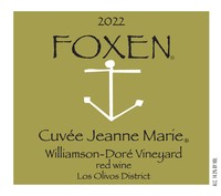 The 2022 Cuvee Jeanne Marie Williamson-Dore Vineyard is bold and punchy, with tons of forward fruit and plenty of immediacy. Succulent red cherry fruit, kirsch, spice, rose petal and orange peel are pushed forward in this racy offering from Foxen. - 92 Points, Antonio Galloni, Vinous